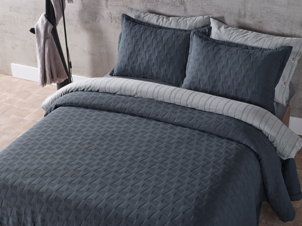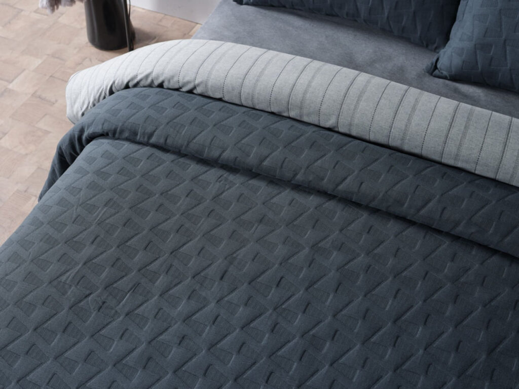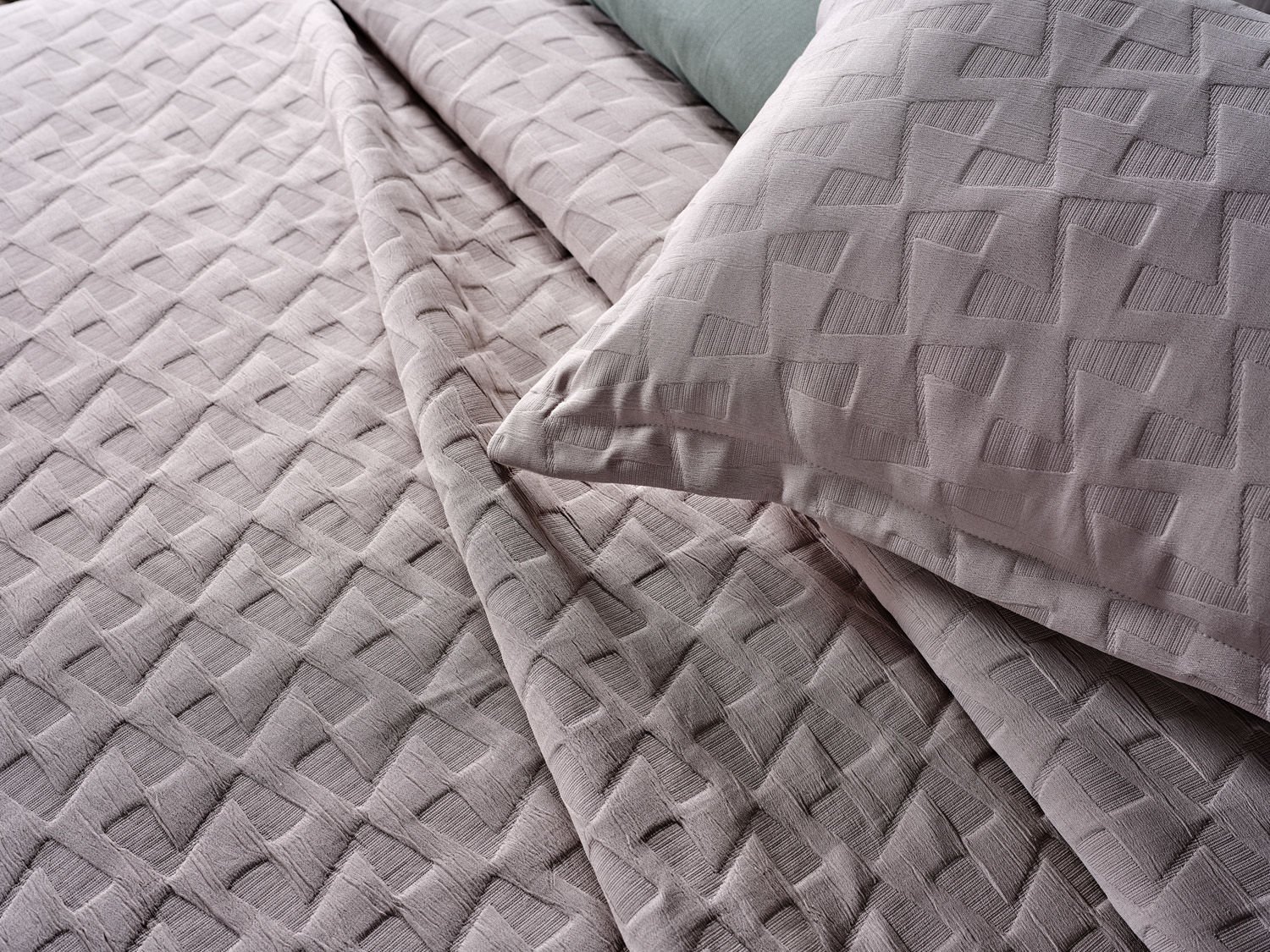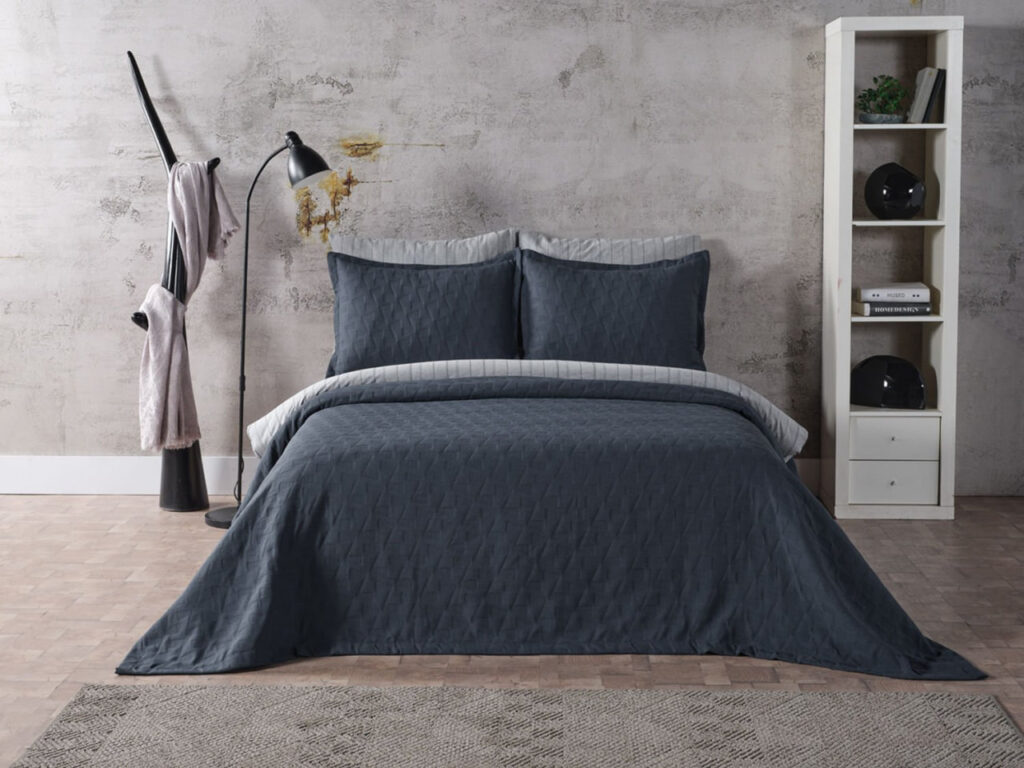 Transformă-ți dormitorul într-un spațiu rafinat și relaxant cu această cuvertură matlasată, confecționată din 100% poliester de înaltă calitate. Designul geometric subtil și textura moale oferă un aspect modern, completând perfect orice stil de amenajare interioară.