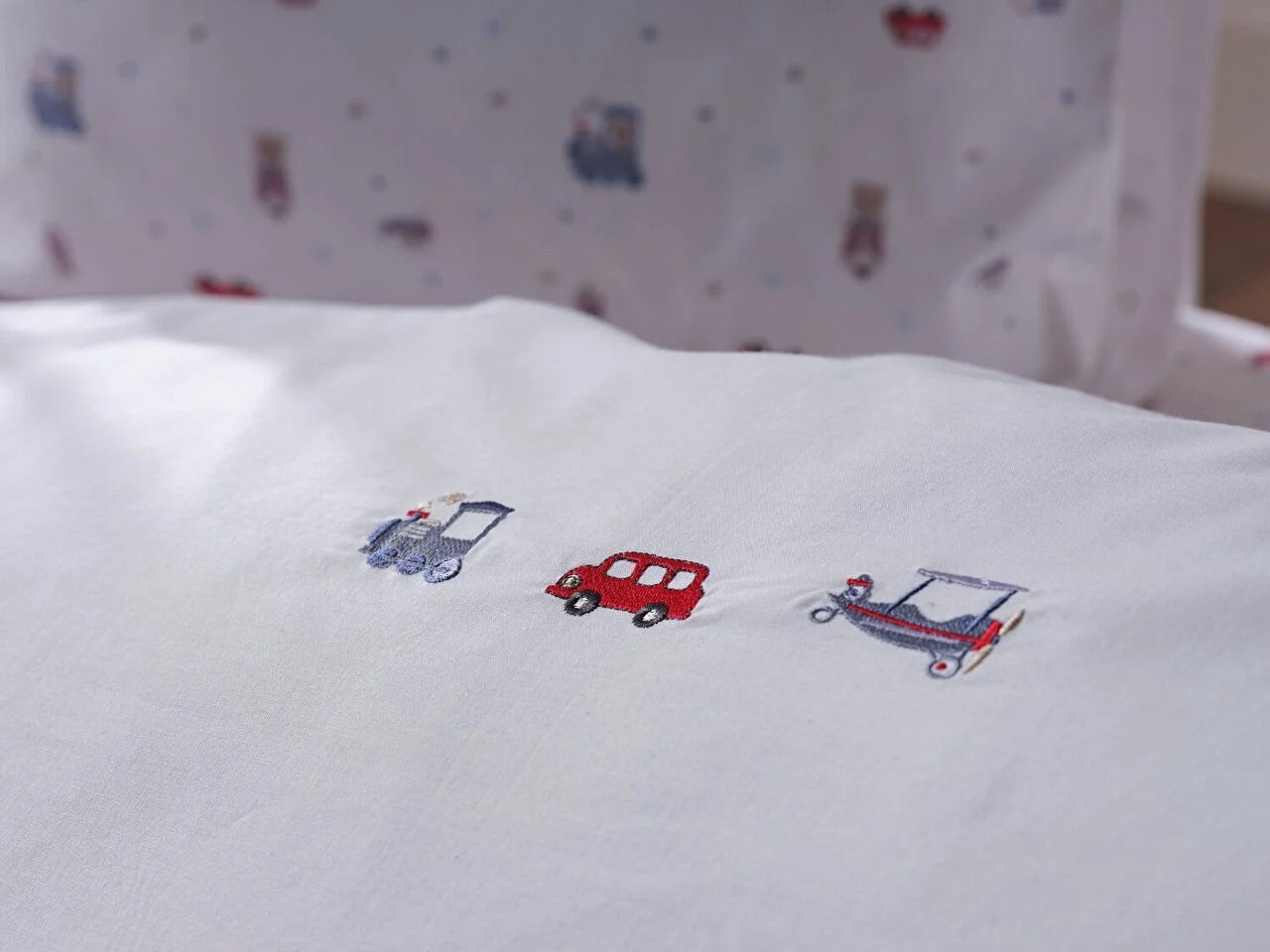 Cu culorile sale delicate, setul de lenjerie pentru copii cu imprimeuri marine oferă un somn confortabil și un plus de frumusețe cu broderia folosită pe țesătura sa moale din bumbac 100%.