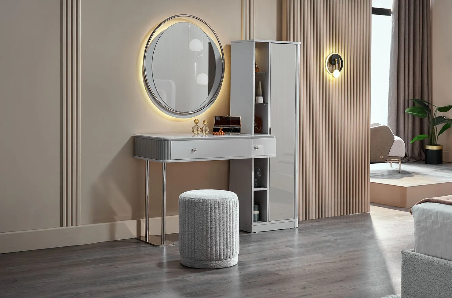 Transformă rutina zilnică de îngrijire într-o experiență elegantă cu masa de machiaj Estella – o piesă statement, creată pentru interioare moderne cu accente luxoase.