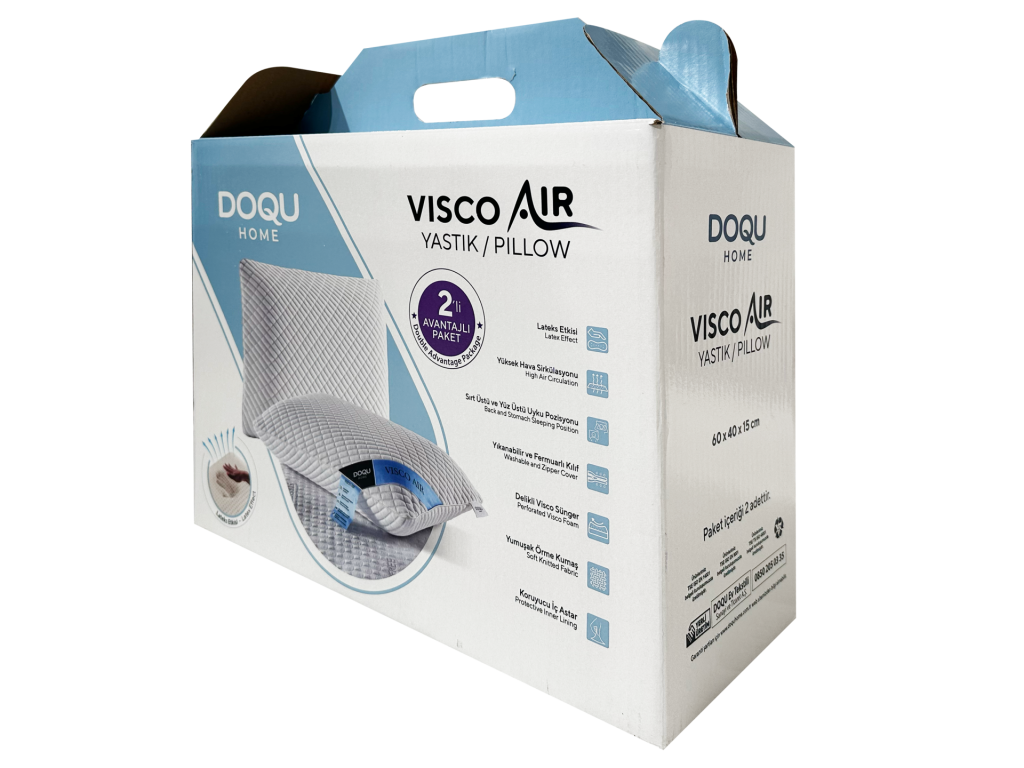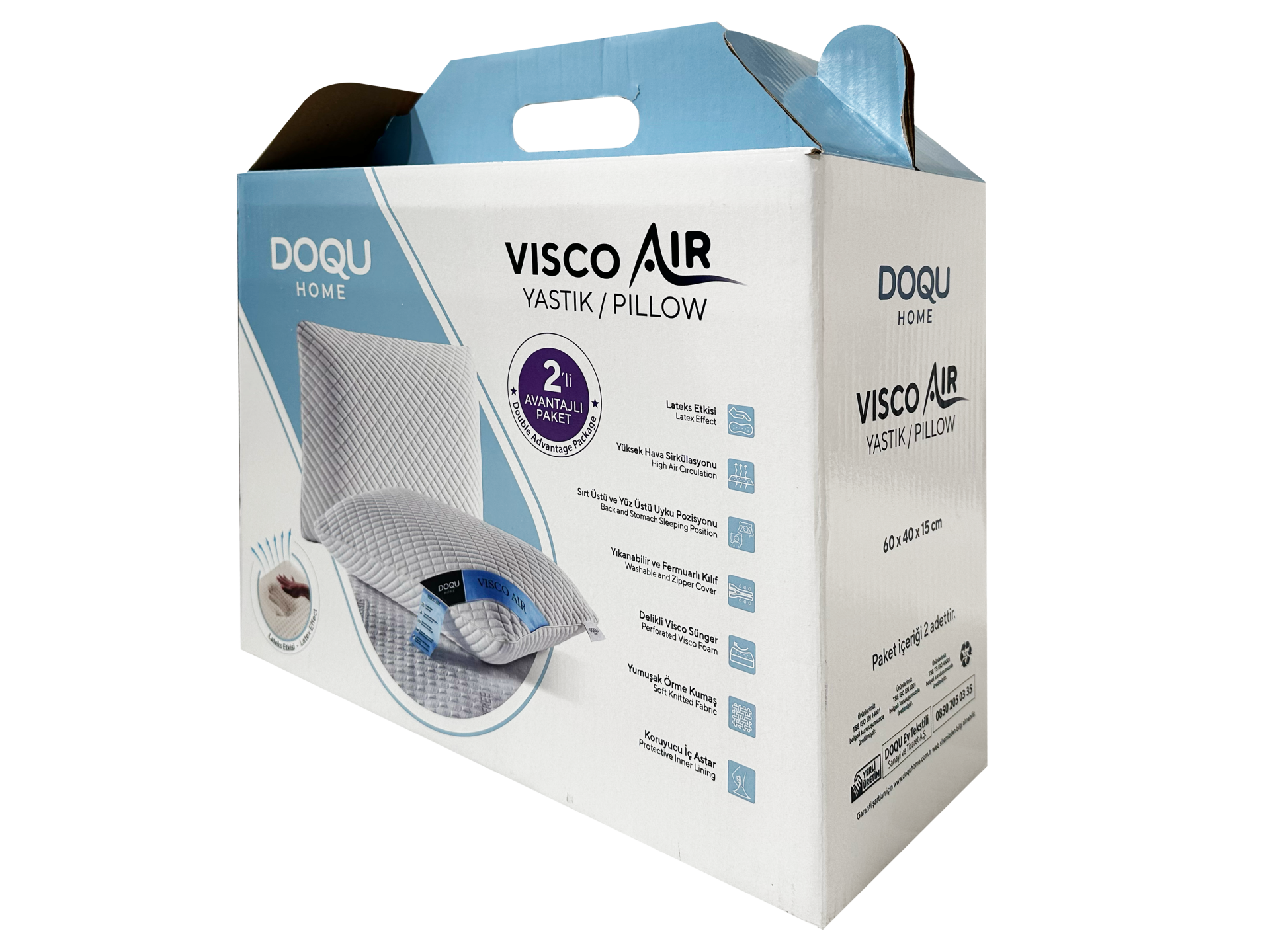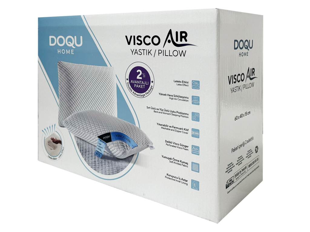 Datorită formei și elasticității, perna Visco Air este ideală pentru cei care dorm pe spate sau pe burtă, oferind alinerea corectă a gâtului și o senzație de susținere naturală.