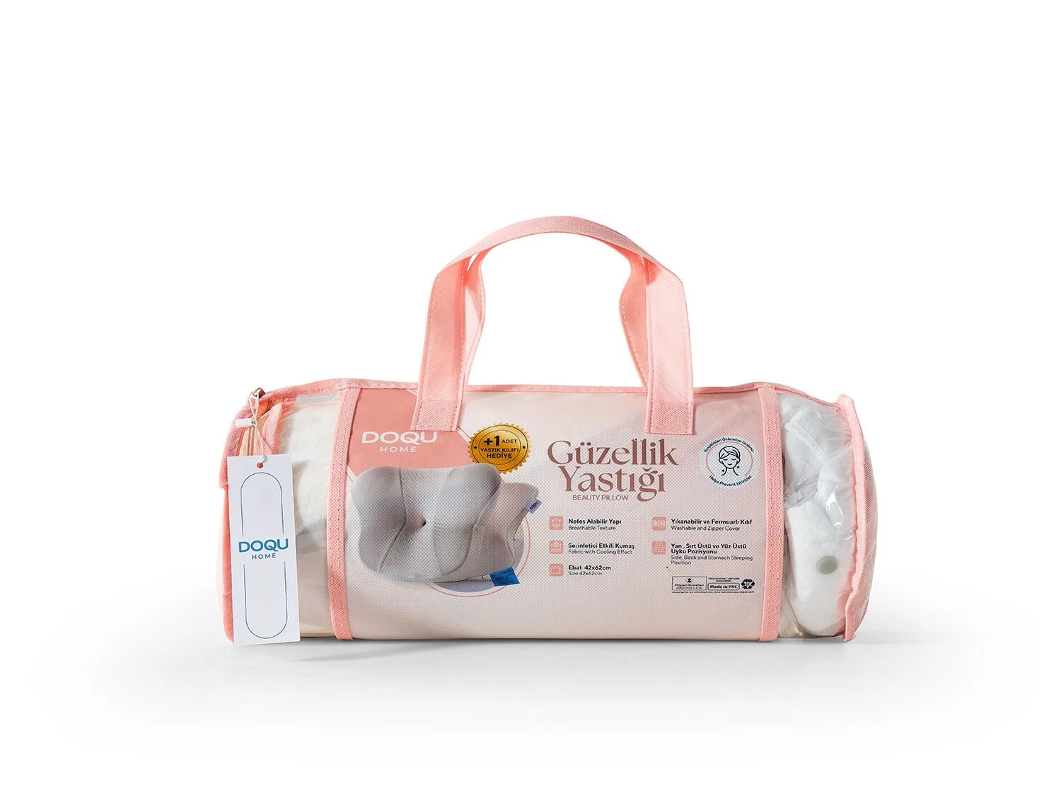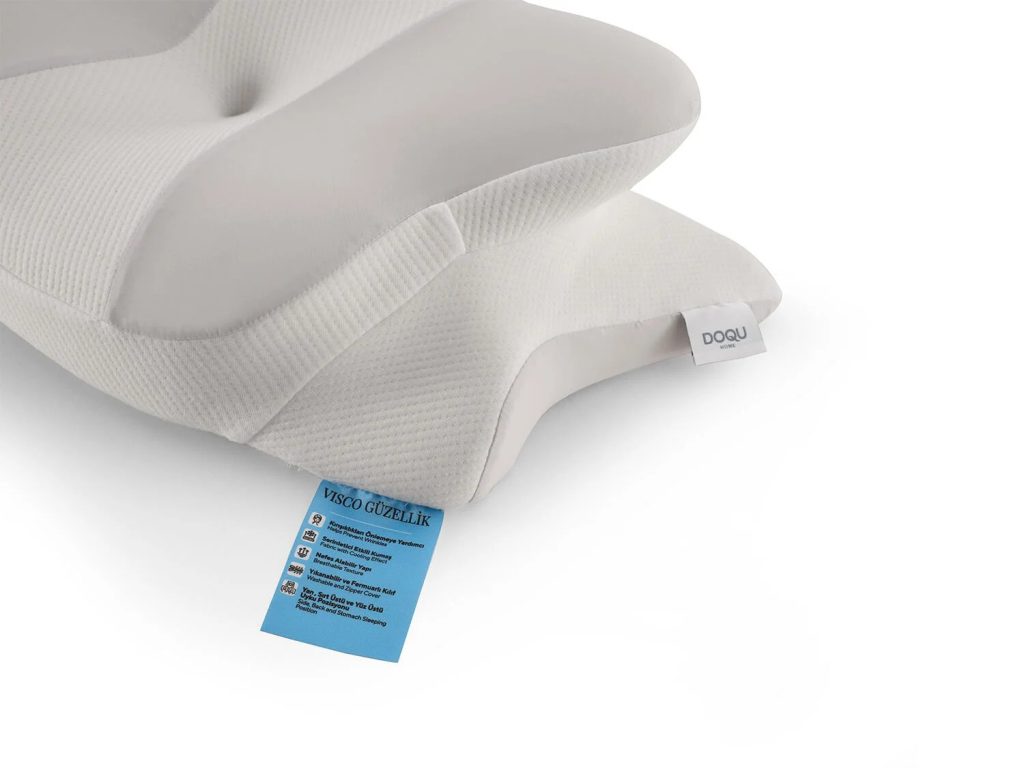Reducerea ridurilor – forma specială minimizează frecarea și presiunea pe față, protejând pielea în timpul nopții.