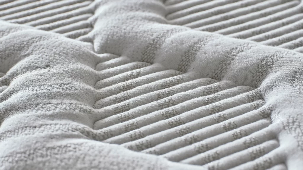 Pentru un plus de confort, salteaua este îmbrăcată într-un material tricotat moale și respirabil, care permite o circulație optimă a aerului, menținând o temperatură plăcută în timpul somnului.