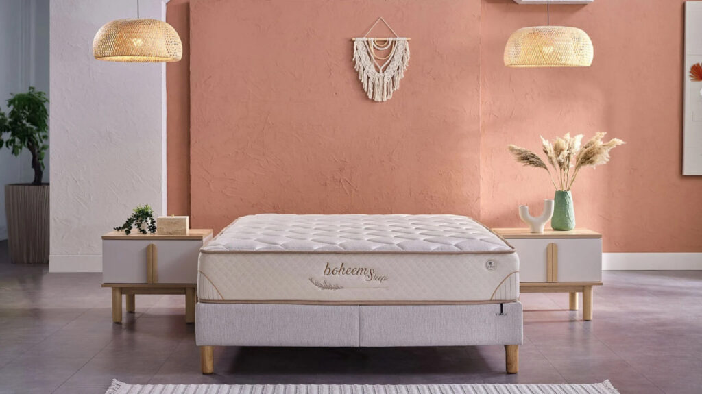 Salteaua Boheems scoate în evidență eleganța stilului boem combinat cu design modern. Țesătura BoheemSleep accentuează naturalețea acestui model de saltea