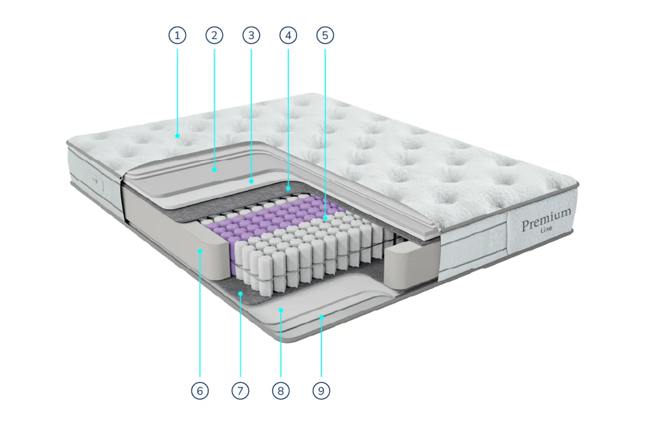 Salteaua Premium Line este dedicată celor ce doresc un somn de calitate superioară, cu un accent aparte pe puritatea și prospețimea mediului de odihnă. Dacă vrei o saltea care să iasă din tipare printr-o tehnologie unică – cum este Ozone Therapy integrată în țesătură – și care să ofere totodată confortul ortopedic al arcurilor individuale, atunci Premium Line este pentru tine.
