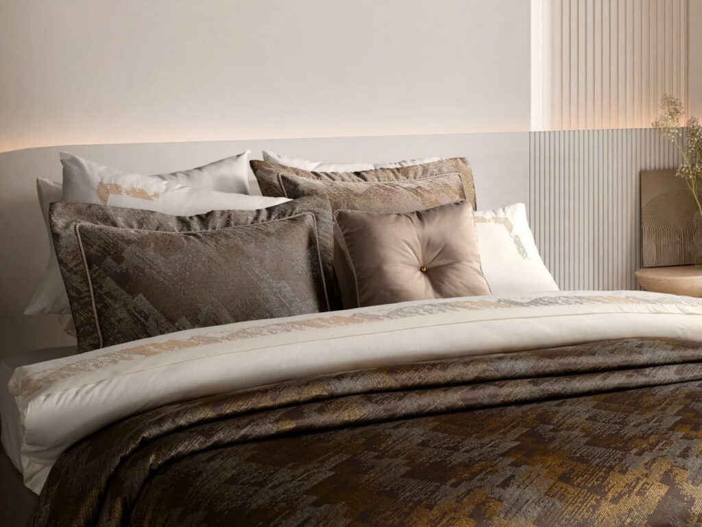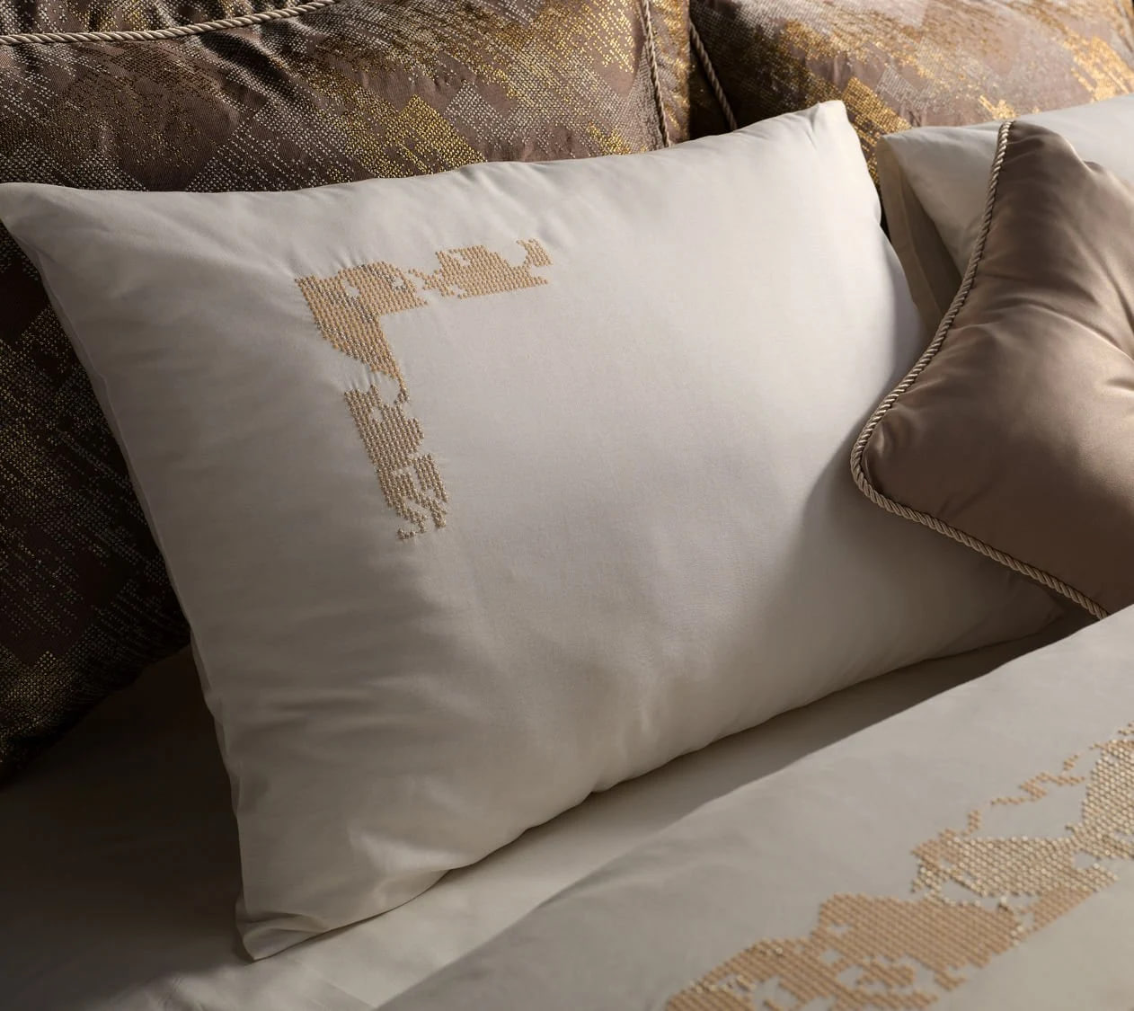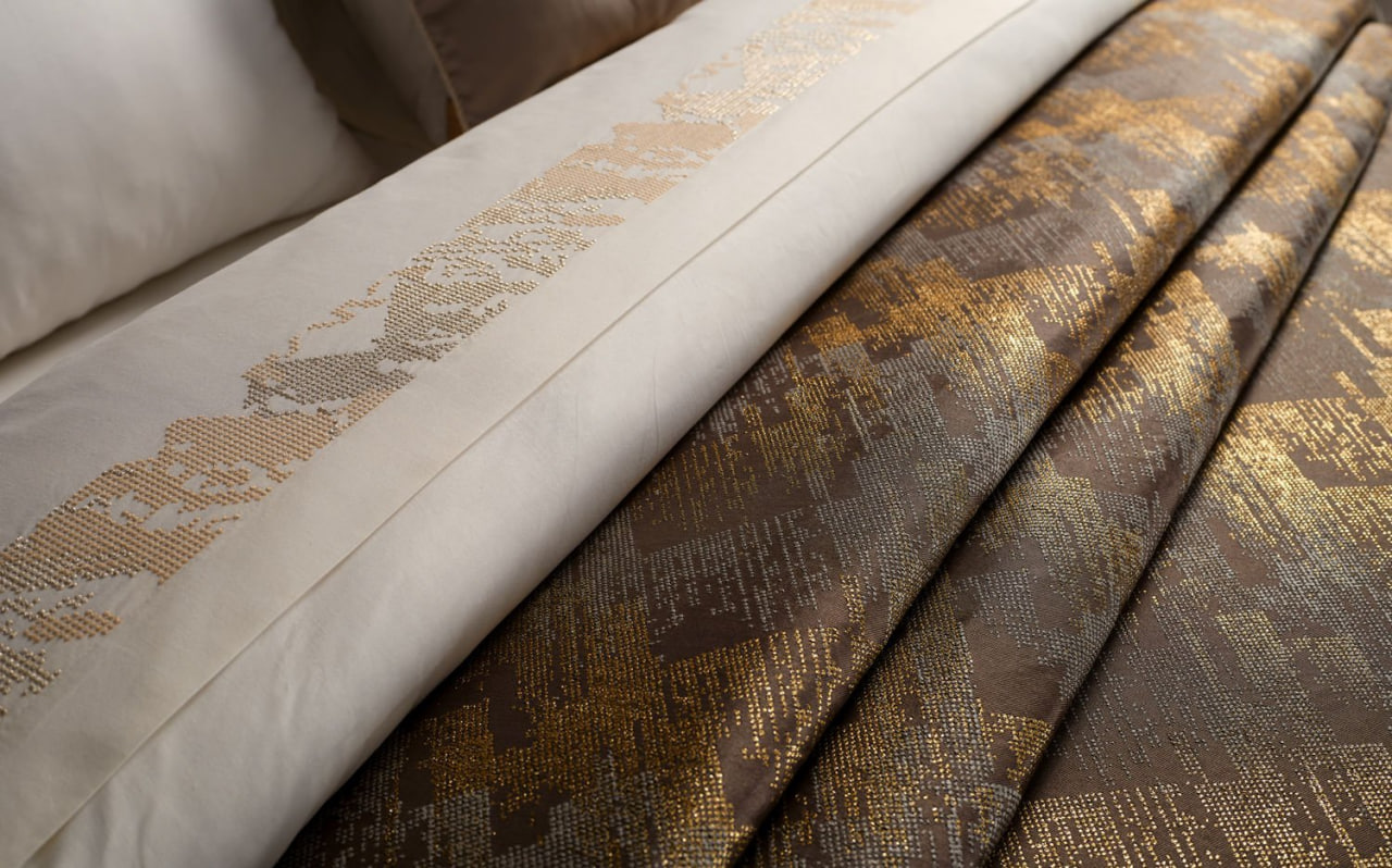 Изысканный декоративный акцент в виде золотистых или серебристых аппликаций (на выбор) украшает наволочки и пододеяльник, добавляя комплекту нотку утончённой элегантности и шарма.