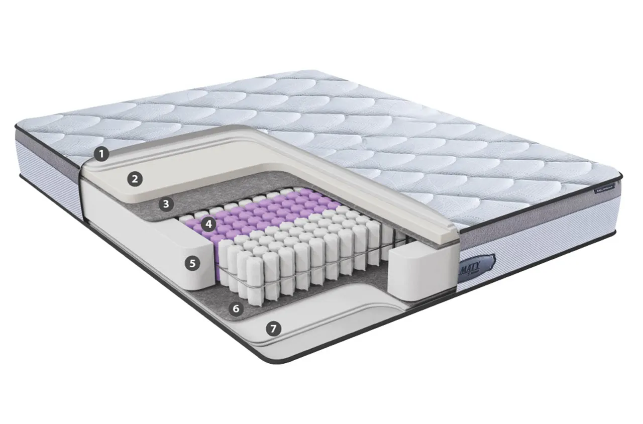 Maty 5 Zone – идеальный баланс между эргономичной поддержкой и современным комфортом. Матрас Maty 5 Zone обеспечивает индивидуальный комфорт сна благодаря системе независимых пружин Pocket Spring, расположенных в 5 эргономических зонах. Эта система поддерживает каждую часть тела, сохраняя позвоночник в естественном положении и снижая точки давления. Идеальный выбор для пар: матрас минимизирует передачу движения, поэтому ваш сон остаётся спокойным, даже если партнёр ворочается.