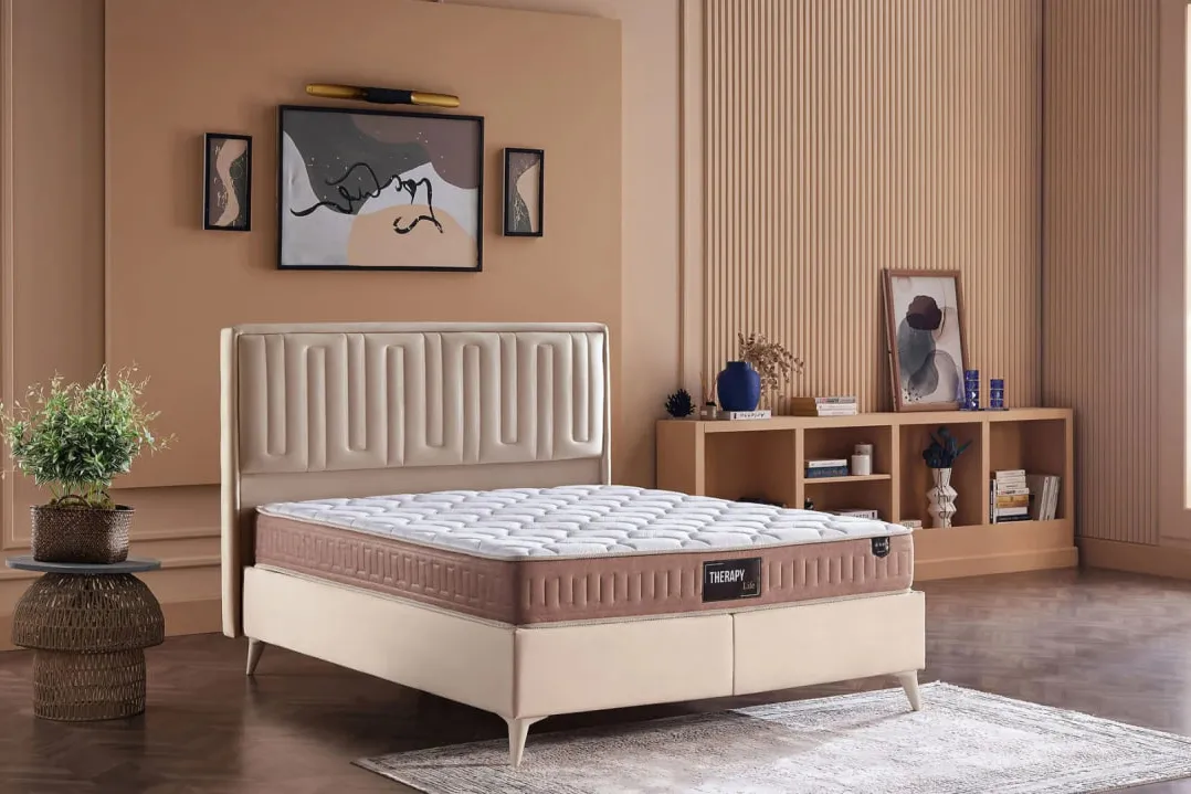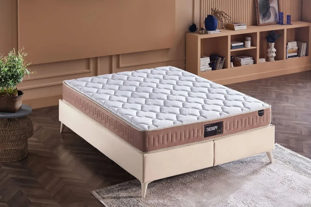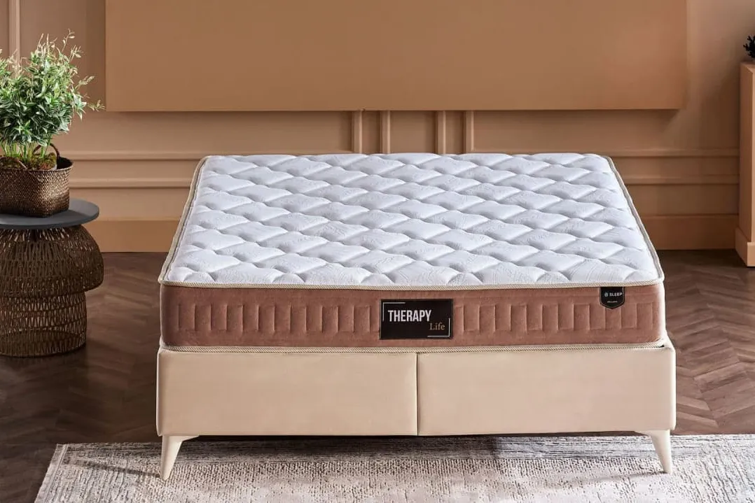 Therapy Life, новая модель матраса в двух цветовых вариантах: темно-синем и кремово-коричневом. Благодаря такому дизайну вы можете выбрать цвет по своему вкусу. Внутренние характеристики матраса, выполненного в двух цветовых вариантах, одинаковы и отличаются только визуально благодаря цветовым аппликациям. Матрас Therapy Life подарит вам комфортный сон благодаря сочетанию пружинной системы SL с мягкой и дышащей внешней текстурой матраса. Пружины SL непрерывно соединены друг с другом, обеспечивая оптимальную поддержку тела при каждом движении. Таким образом, они не деформируются со временем. По всему краю матраса используется твердая пена для поддержки краев. Эта пена увеличивает прочность матраса, предотвращая его сдавливание и разрушение.