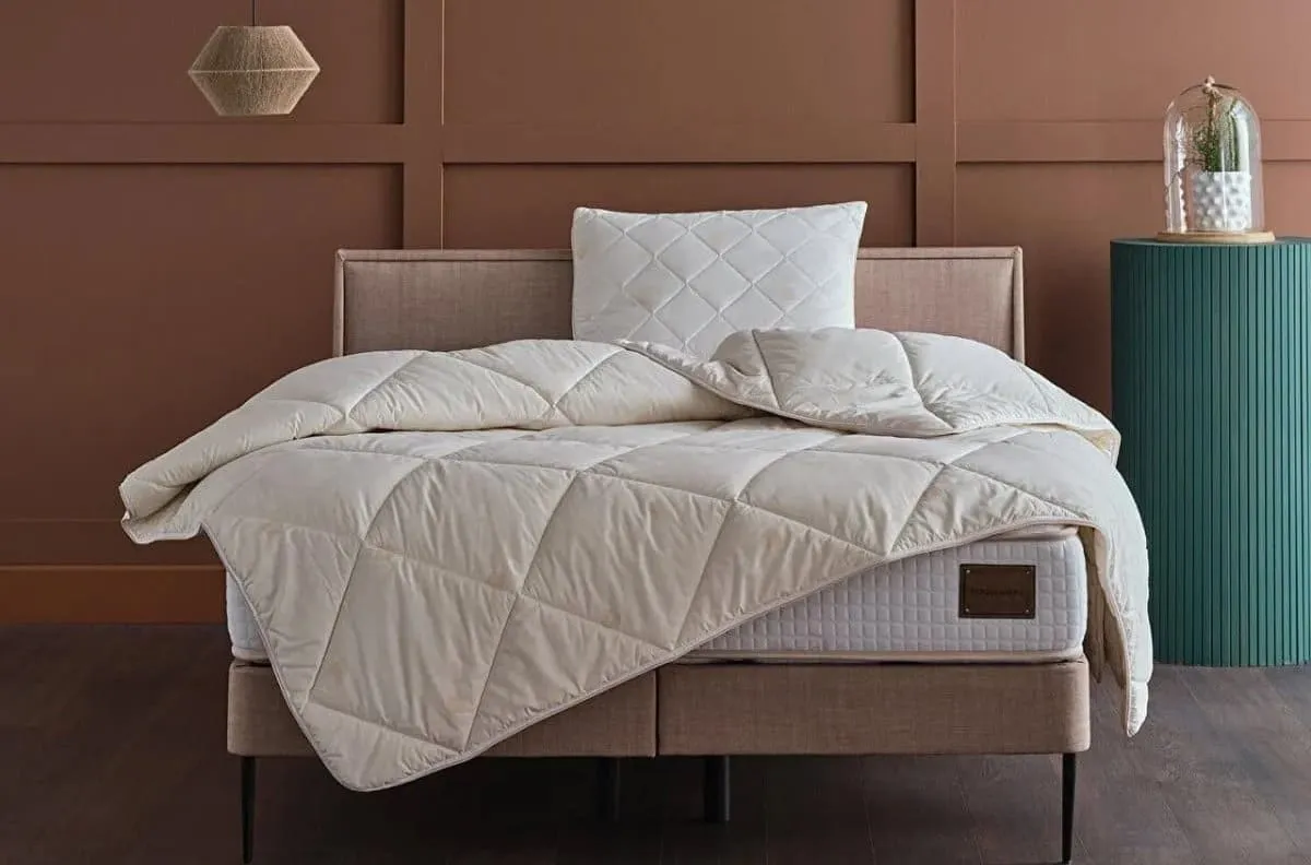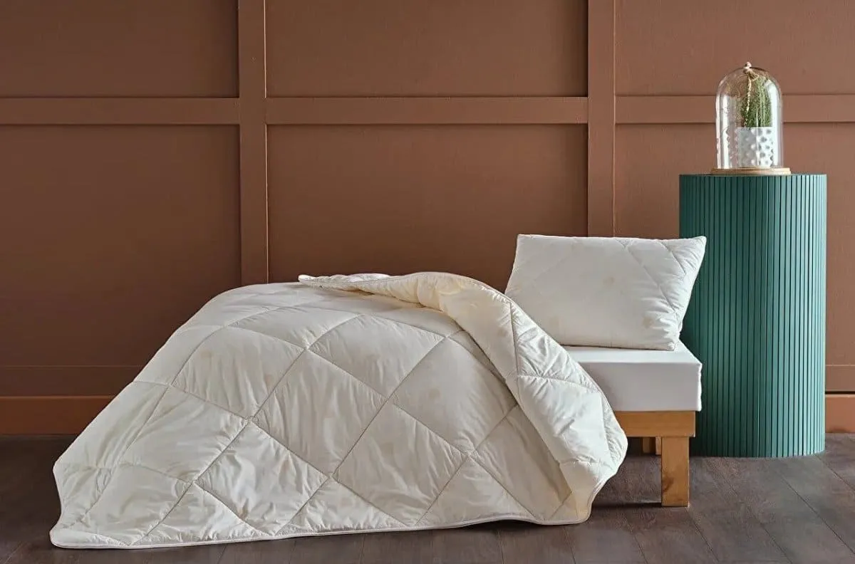 Для тех, кто предпочитает натуральные волокна и ткани, это одеяло содержит 50% наполнителя из натуральной шерсти и 50% наполнителя PES, а его внешняя ткань изготовлена из 100% хлопчатобумажной ткани. Это естественно сопровождает ваш сон. Вес наполнения 300гр/м2. В зависимости от натуральной текстуры шерсти ее способность впитывать влагу очень высока. Таким образом, он помогает поддерживать баланс температуры тела в течение ночи. Для тех, кто предпочитает натуральность, идеальным выбором станет пуховое одеяло Festival Wool из хлопчатобумажной ткани с дышащей и гигиеничной структурой.