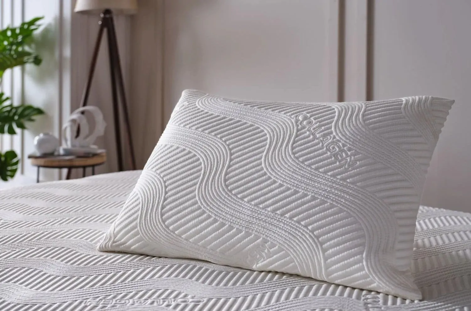 Подушка Visco Colagen обеспечивает максимальный комфорт благодаря внешней ткани из специальных коллагеновых нитей и пластине виско толщиной 0,7 см, а внутри используется смесь виско-пены и гранул мягкой пены.
