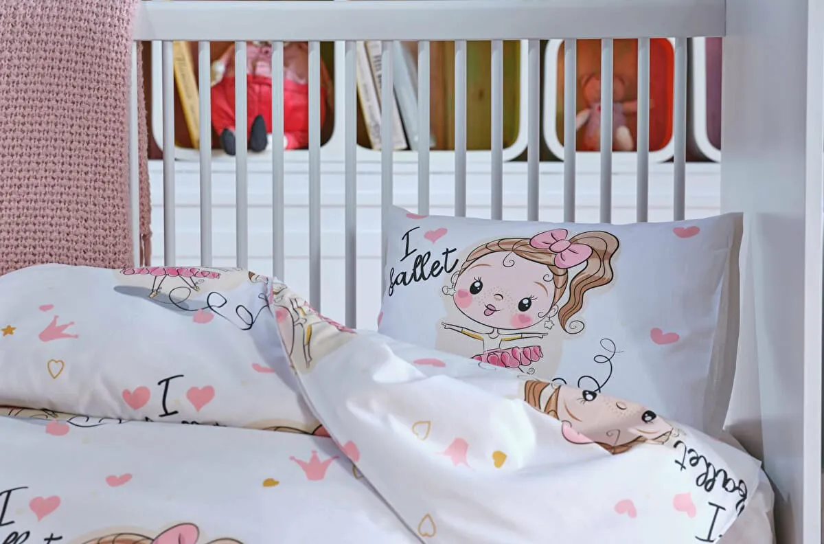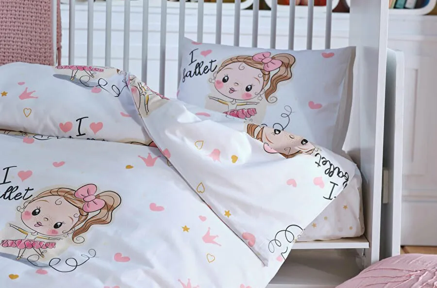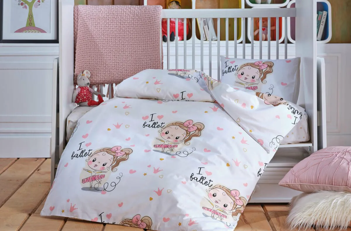 Комплект постельного белья для детской кроватки – часть нашей коллекции, посвящённой оформлению комнат для малышей. Набор «Балерина» — идеальный выбор для мам, которые мечтают о нежном, радостном и безопасном интерьере для своих дочурок. С оригинальным дизайном, выполненным в мягких тонах, и очаровательной балериной, нарисованной на ткани, этот комплект приносит в каждый вечер немного сказки и волшебства.