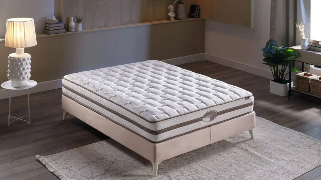 Матрас оснащен пружинной системой Bonell, которая гарантирует прочность и удобство конструкции, способствуя спокойному и комфортному сну. Пружины Bonell проходят двойную термообработку, что делает их еще более долговечными и устойчивыми к износу. Благодаря этому матрас сохраняет свою форму и комфортные свойства на протяжении многих лет.